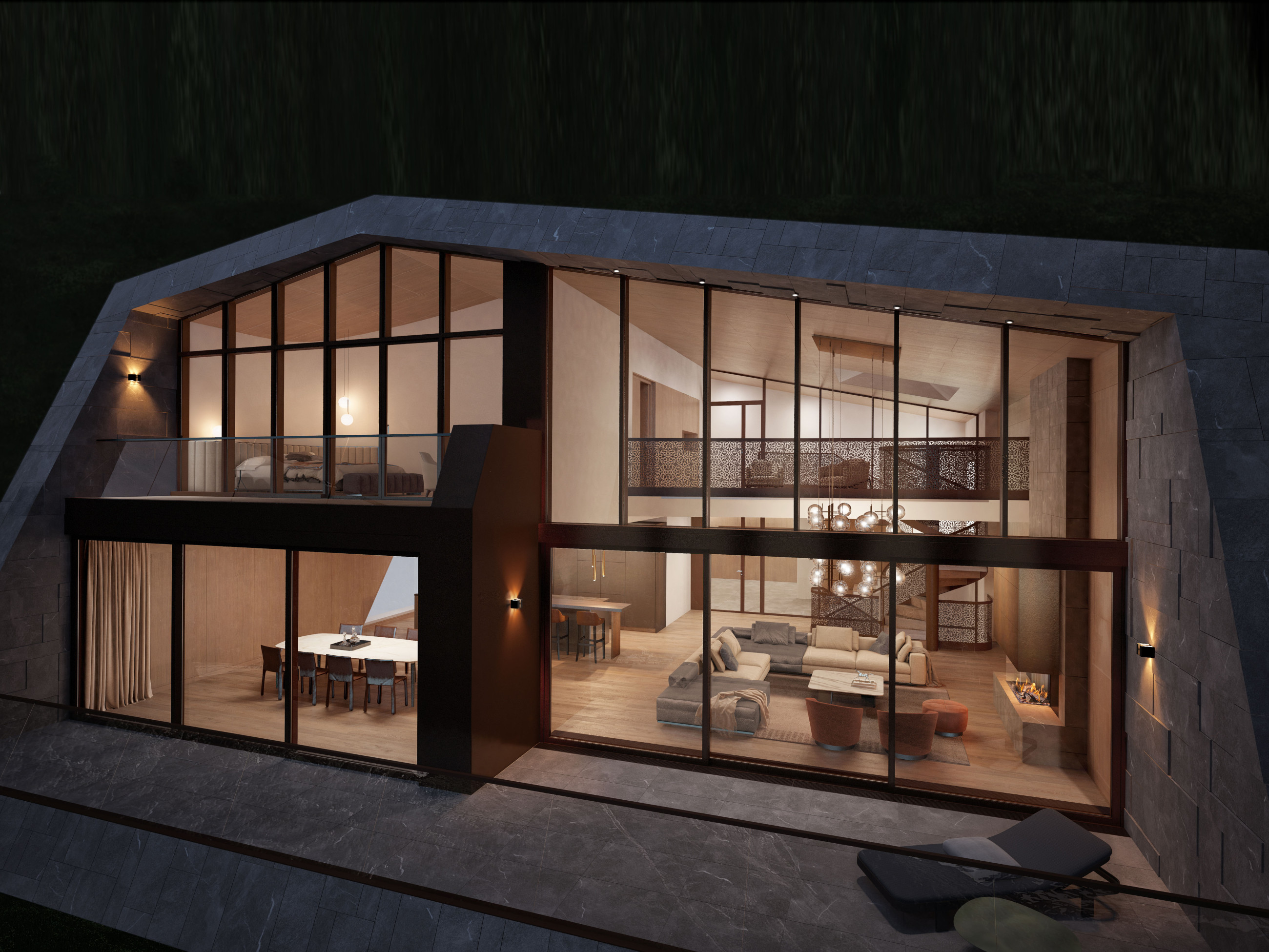 Alpine Architektur am Südhang Engelbergs mit Blick auf den Titlis. Auf Augenhöhe mit den Falken in der frischen Bergluft. Kraftvoll und königlich.